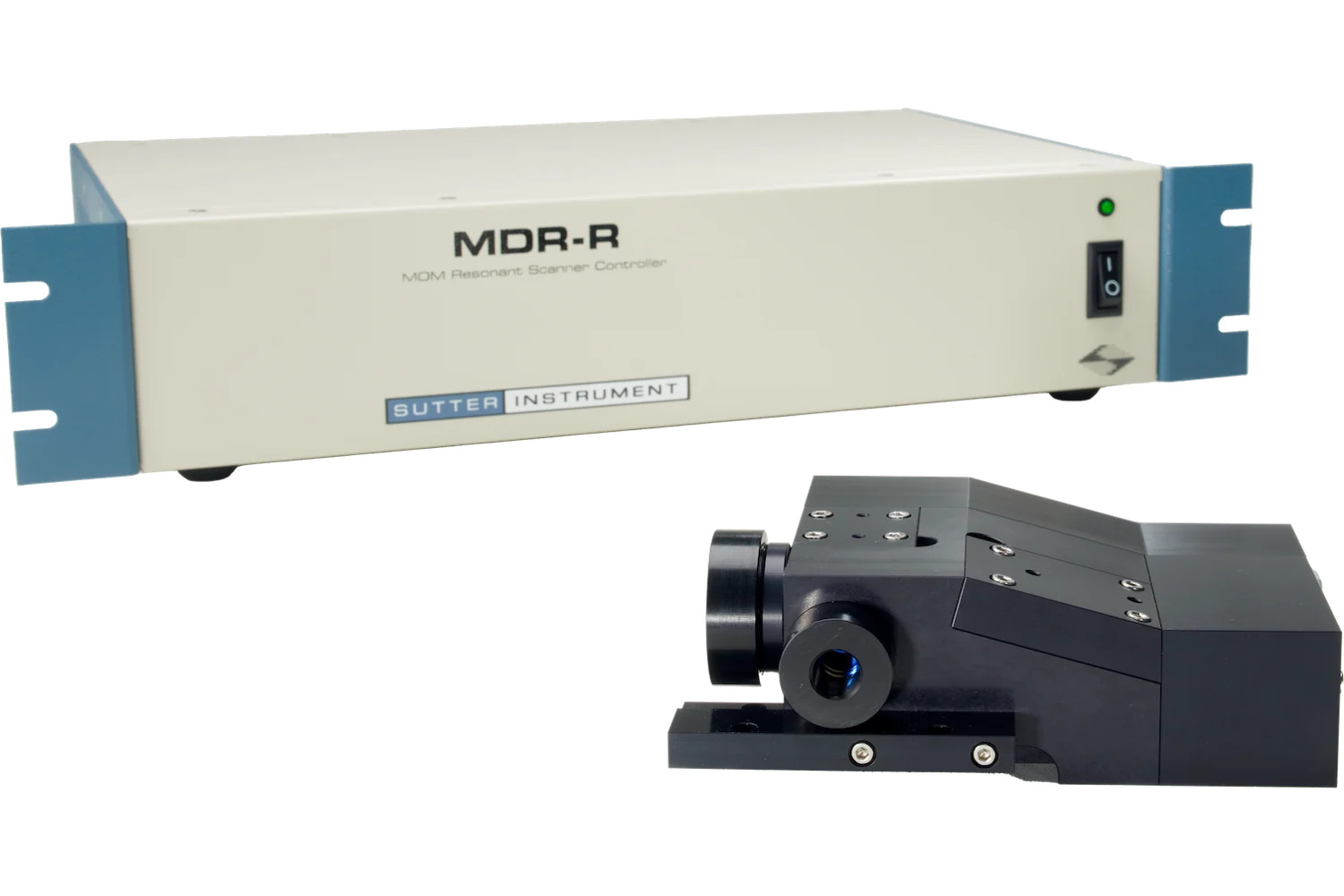 В комплекте: резонансный сканер Cambridge CRS 8 кГц и гальванометр 6215, 5 мм, в бесшумном герметичном корпусе, разработанном Sutter; Контроллер MDR-R для обоих сканеров с блоком питания, выходом SYNC и входами ZOOM и Y Position; шнур питания и кабели для подключения к резонансному сканирующему блоку, а также монтажный адаптер для Sutter MOM или стандартного 60-миллиметрового кэйджа (чертежи доступны).
